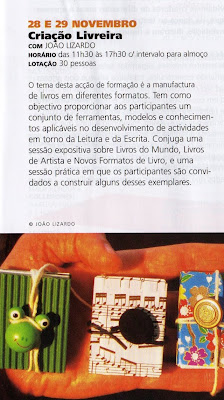 Um workshop de um dia no Centro Cultural de Belém para aprender a fazer livros (clique na imagem para ler o texto). Hoje de manhã ainda havia vagas para domingo, 29 de Novembro. É marcar já pelo telefone 213 612 899.